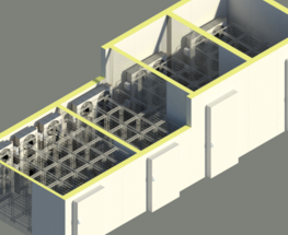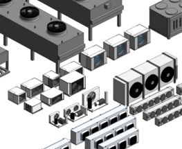 Modele evaporadores, condensadoras/central, antecâmara e áreas técnicas com padrão BIM, garantindo posicionamento, manutenção e rotas de instalação.